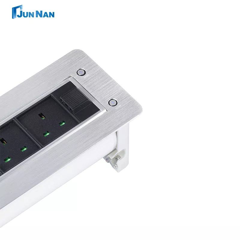 A Guangzhou Junnan egy professzionális, 220 V váltóáramú, alacsony feszültségű, 180 fokban forgó asztali csatlakozóaljzat gyártó Kínában. A stílusos csatlakozóaljzatokat főként konferenciaasztalokon használják, a felhasználók a gomb megnyomásával vezérelhetik az aljzatpanel átfordítását. Desktop Flip Socket, a telepített asztali aljzat bizonyos dőlésszögű lesz, ami nem csak ergonomikus és kényelmesebbé teszi a felhasználó használatát, hanem egy réteg biztonsági védelmet is nyújt, még akkor is, ha véletlenül kiömlik egy csésze víz, ne szórja szét az aljzatot.