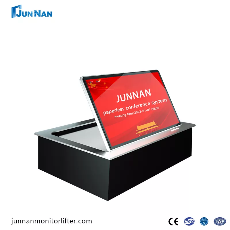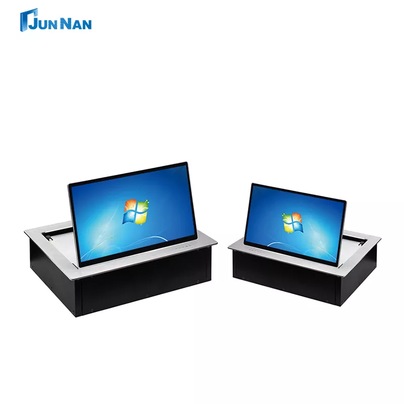 A Guangzhou junnan az asztali flip monitorok professzionális gyártója Kínában. Desktop Flip Display 15,6 hüvelykes görgető felfelé A Screen Conference System főként magas szintű vezetői konferenciaasztaloknál használatos. A konferencia asztali flip monitorok elrejthetők a konferenciaasztal belsejében, amikor nem használják, ami helyet takarít meg az asztalon, és rendezettebbé teszi a konferenciaasztalt. A használaton kívüli monitor elrejtése megvédi a képernyőn megjelenő tartalmat attól, hogy mások láthassák, és ezzel megnő az információ biztonsága. A motoros vezérléssel az úszólappal könnyedén a megfelelő szögbe fordíthatja a monitort a legjobb látószöghatás érdekében. Felszerelhető mikrofonnal, egy gombos flip, elöl és hátul állítható, becsípődésgátló funkcióval, biztonságos és gondtalan, rejtett beágyazott telepítés nagyon szép.