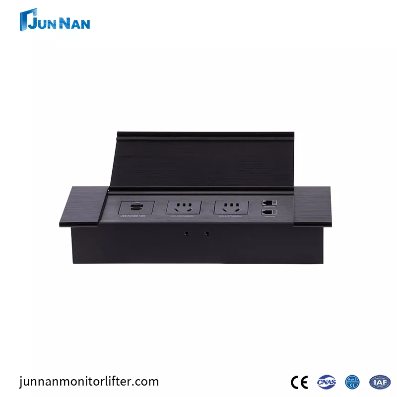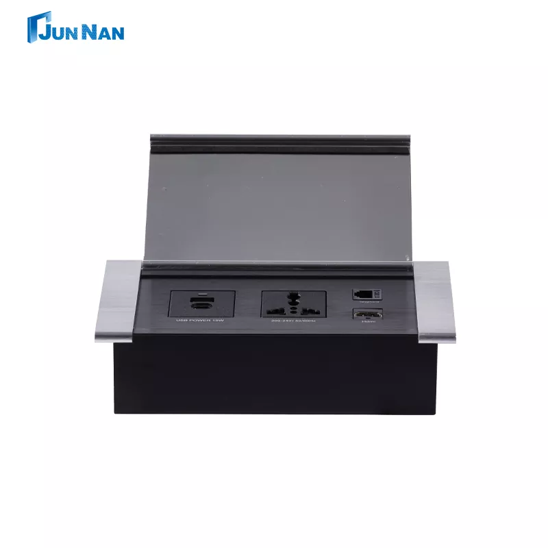 A Guangzhou Junnan az elektromos emelő felugró asztali aljzat vezeték nélküli USB univerzális tápcsatlakozójának professzionális gyártója Kínából. Az USB előugró aljzat egyfajta elektromos berendezés, amely ötvözi a modern technológiát és a praktikus kialakítást, amely egyesíti a hagyományos aljzatcsatlakozót a kényelmes USB töltőporttal, és a pop-up elrejtési módszert alkalmazza, hogy egyszerűbb, szebb élményt nyújtson a felhasználóknak. és gyakorlati tapasztalat az elektromosság használatáról. Alkalmas konyhába, hálószobába, irodába, kávézóba és egyéb helyekre. Kényelmes és könnyen használható, egyetlen gombnyomással felugrik, egyszerű kezelés. Akár otthon, akár irodában, akár nyilvános helyeken, a felhasználók könnyen használhatják.