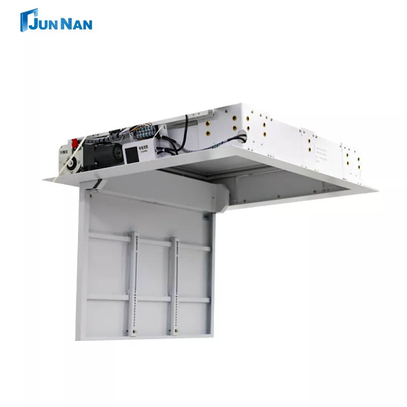 Junnan távirányítós teleszkópos akasztós 32-70 hüvelykes TV elektromos mennyezet Flipper intelligens pozicionáló távirányító/központi vezérlés/kézi vezérlés, egyszerű és kényelmes kezelés. Magas emelési szabadság, szabályozható, akasztós emelési távolság szabadon állítható. Fejlett TV-mennyezeti úszók vagyunk, egyszerű karbantartás, nagykereskedelmi vásárlás, személyes testreszabás. Junnan berendezésünk rendelkezik CCC, CE tanúsítvánnyal, ROHS, ISO tanúsítvánnyal és sok más tanúsítvánnyal, termékbiztonsággal és minőséggel, export minősítéssel, gyári közvetlen értékesítéssel, árengedményekkel, saját gyárral rendelkezik, sok éve működik.